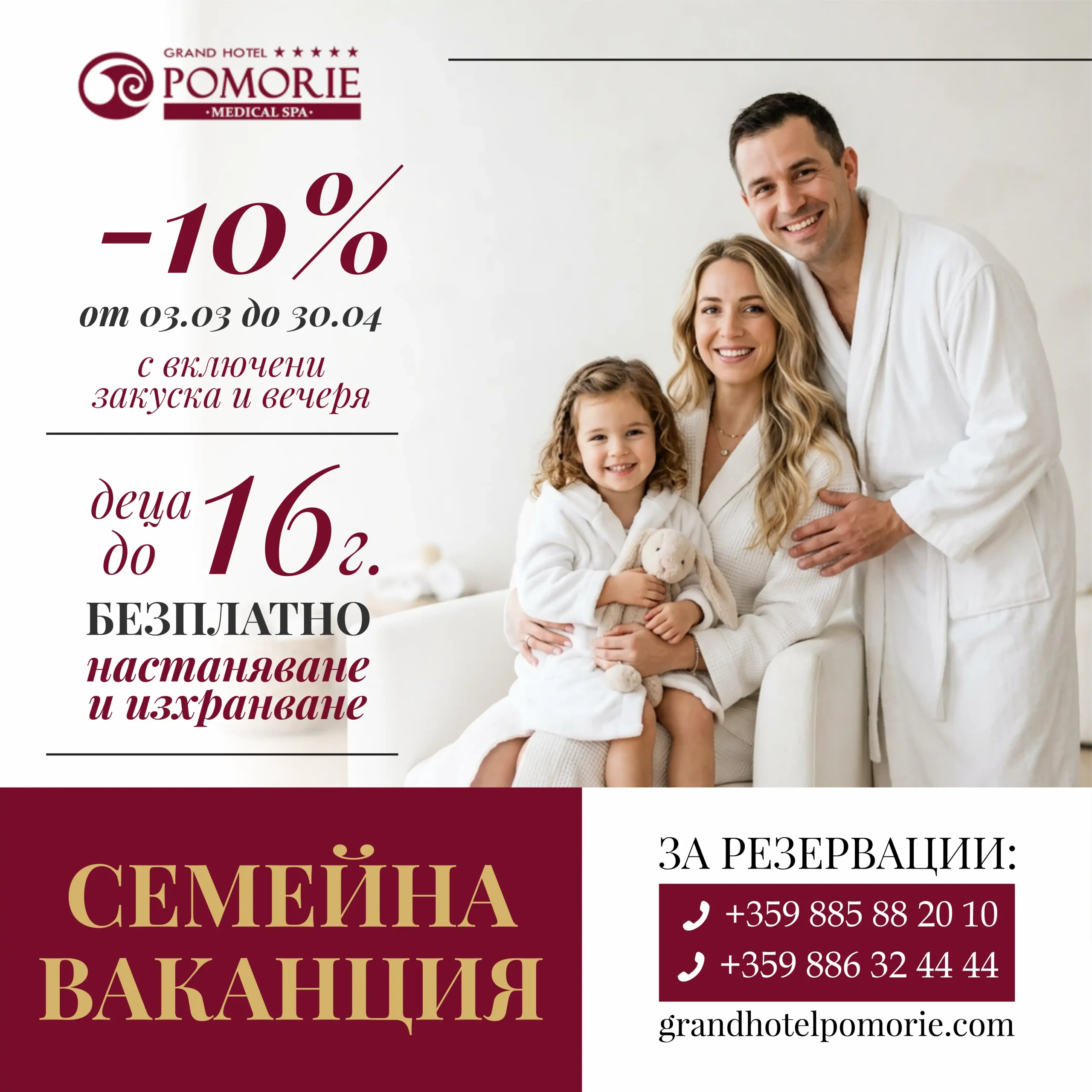 03 МАРТ – 30 АПРИЛ | Гранд Хотел Поморие Medical SPA ⭐⭐⭐⭐⭐