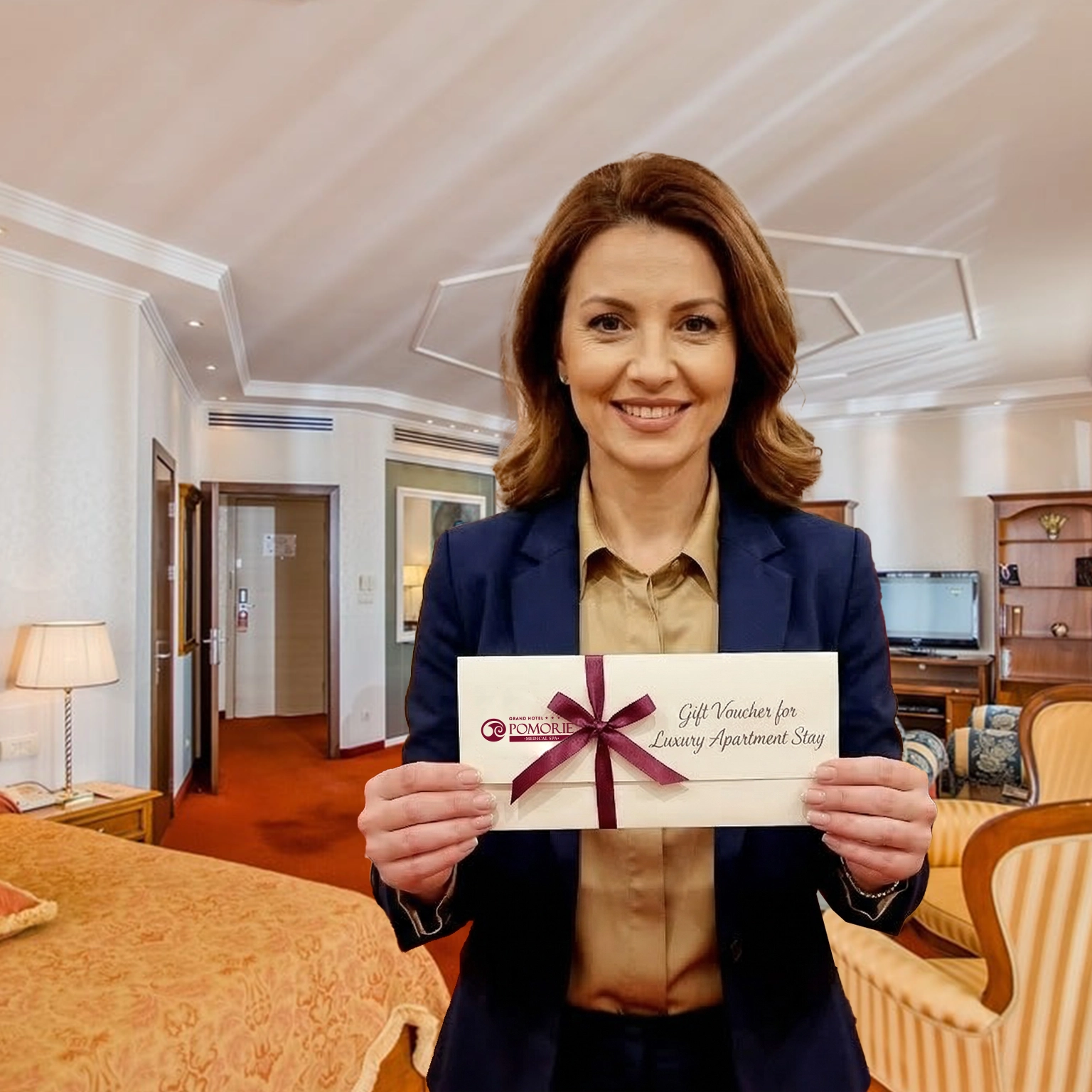 Търсите перфектния подарък, който да остави траен спомен? Изненадайте Вашите близки, приятели или бизнес партньори с ексклузивен подаръчен ваучер от Гранд Хотел Поморие.