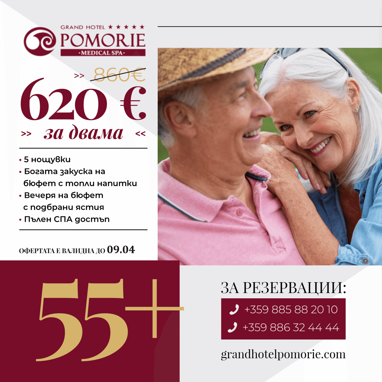 - Пълен СПА достъп: Финландска, билкова и инфрачервена сауна, парна и турска баня, Кнайп пътека, ледена стая, приключенски душове, джакузи, фитнес, вътрешен лечебен солен басейн и басейн „Зимна градина“.